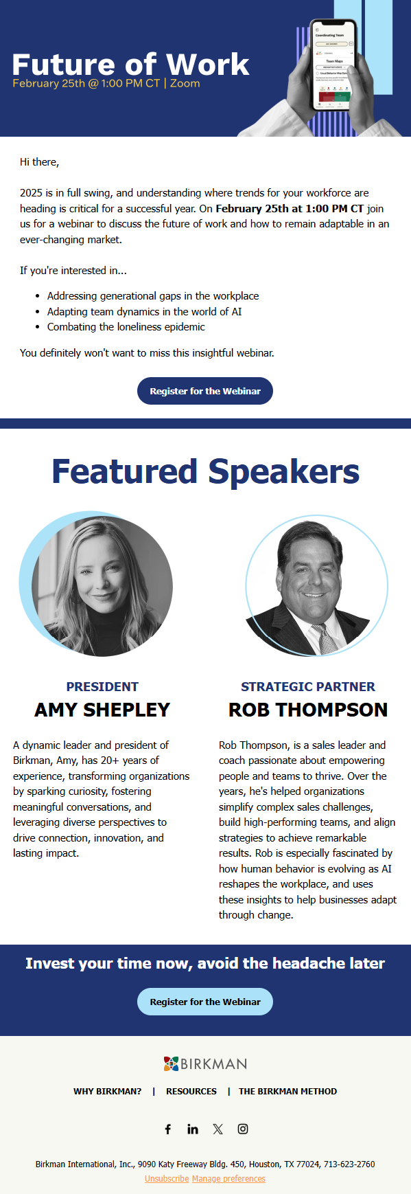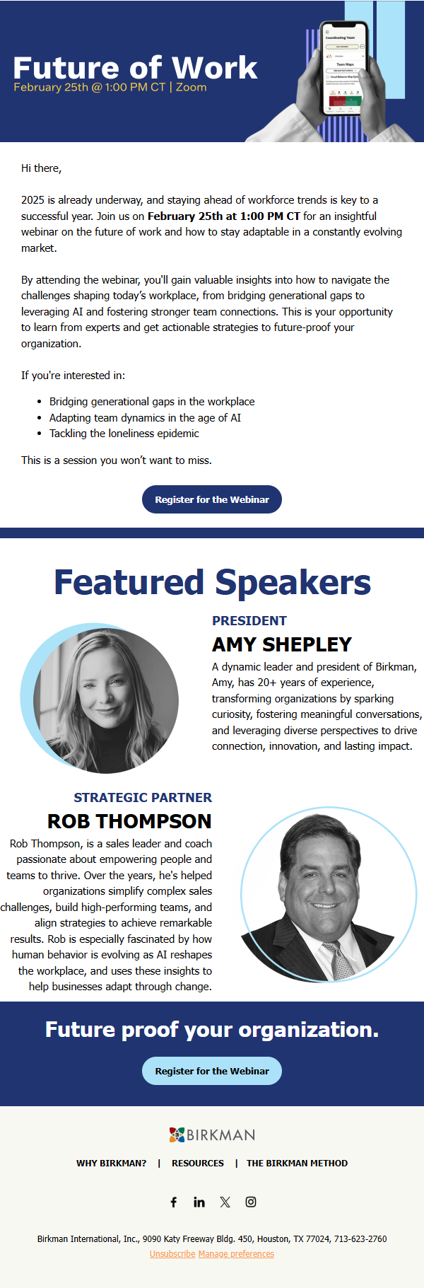 Gain Brand Awareness and generate leads by hosting a webinar focused on the future of the workforce, primarily driving interests amound coaches, CHROs, and HR Managers.